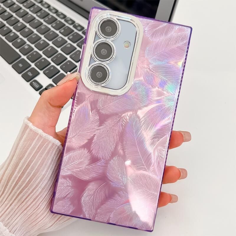 Για Samsung Galaxy A54 5G Επιμετάλλωση Glitter Υφή TPU τηλέφωνο υπόθεση με φακό ταινία (μοβ φτερά)