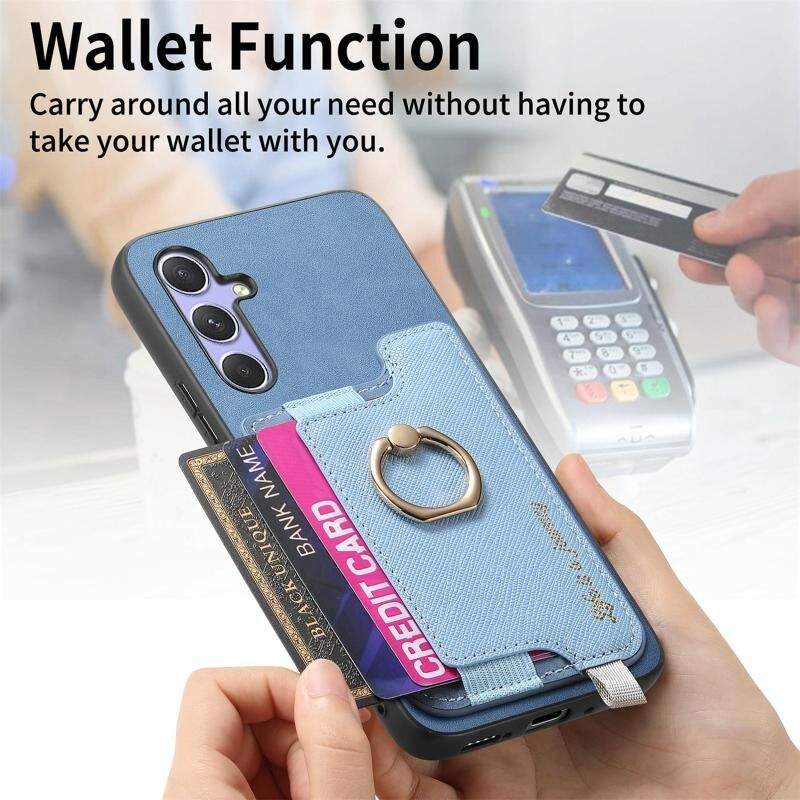 Θήκη κινητού τηλεφώνου Samsung Galaxy A54 5G Retro Cross Leather Ring Horizontal Insert Card Bag MagSafe (Ροζ)