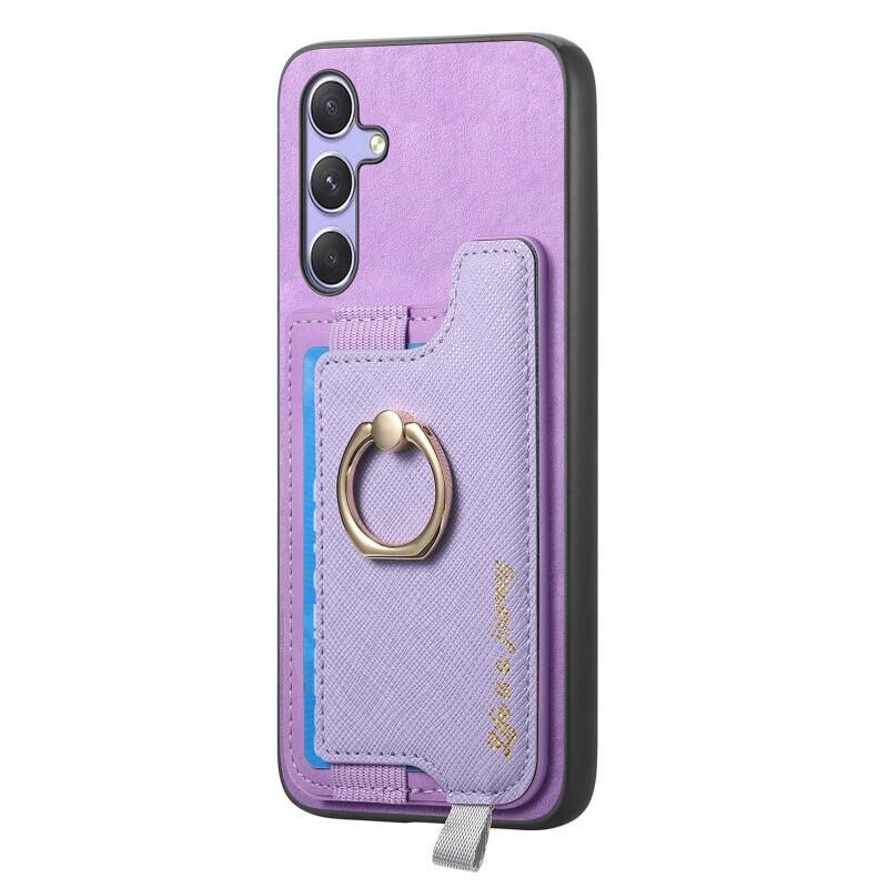 Θήκη κινητού τηλεφώνου Samsung Galaxy A54 5G Retro Cross Leather Ring Horizontal Insert Card Bag MagSafe (Ροζ)