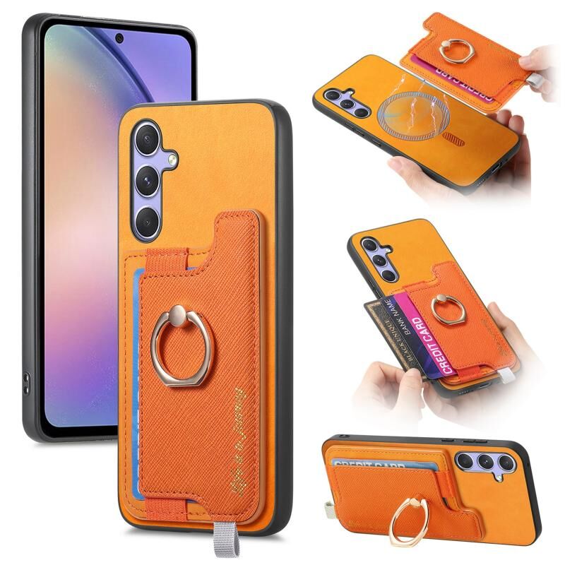 Θήκη κινητού τηλεφώνου Samsung Galaxy A54 5G Retro Cross Leather Ring Horizontal Insert Card Bag MagSafe (Ροζ)