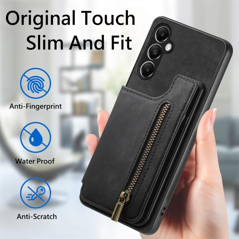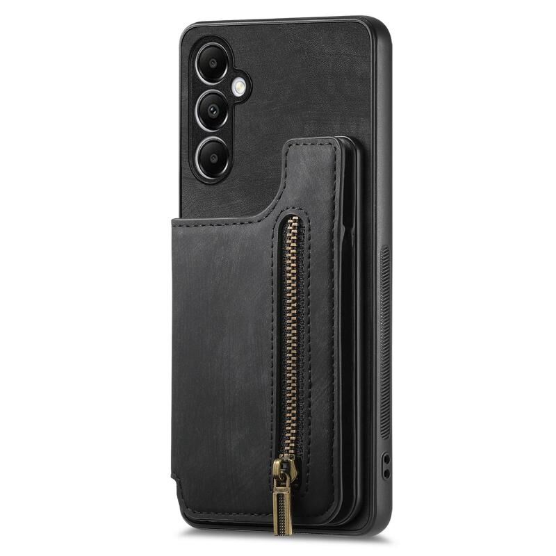 Για Samsung Galaxy A54 5G Retro δέρμα φερμουάρ πορτοφόλι πίσω θήκη τηλεφώνου (μαύρο)