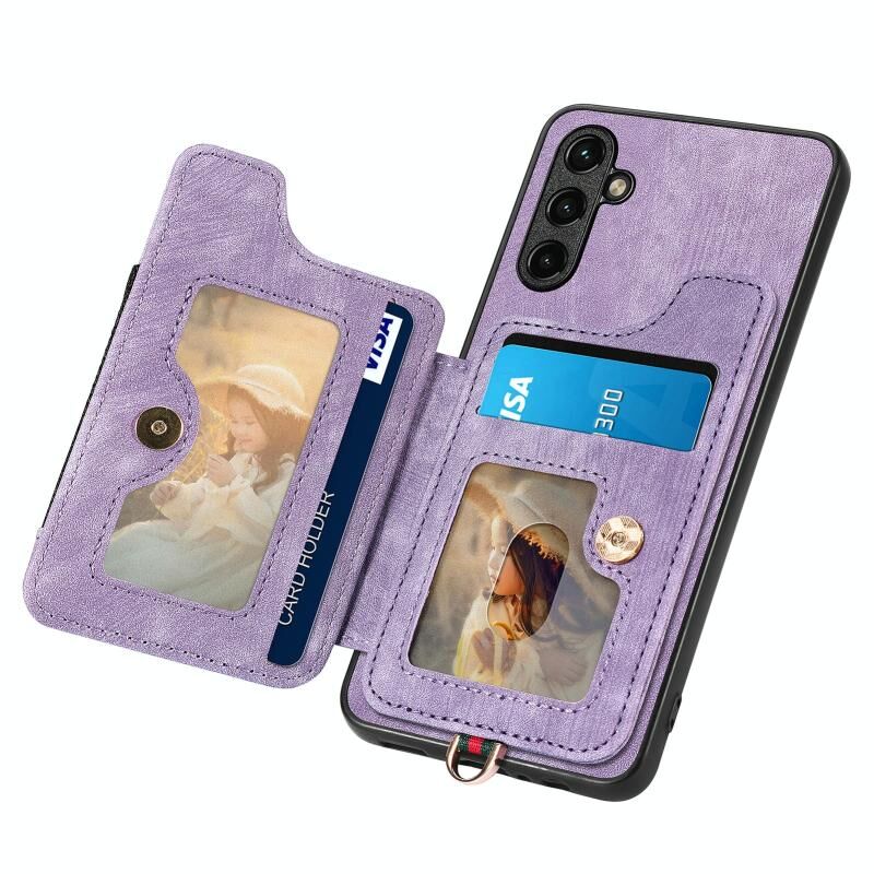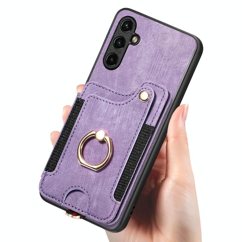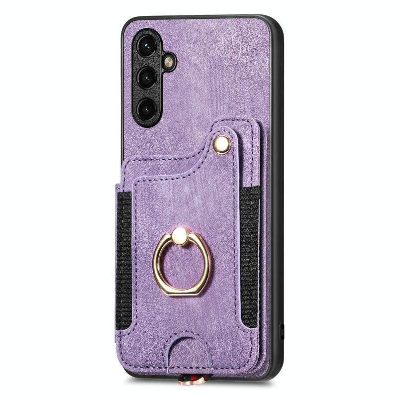 Για Samsung Galaxy A54 5G Ρετρό δέρμα-feel δαχτυλίδι δαχτυλίδι πολυ-κάρτα πορτοφόλι υπόθεση τηλεφώνου (Μωβ)