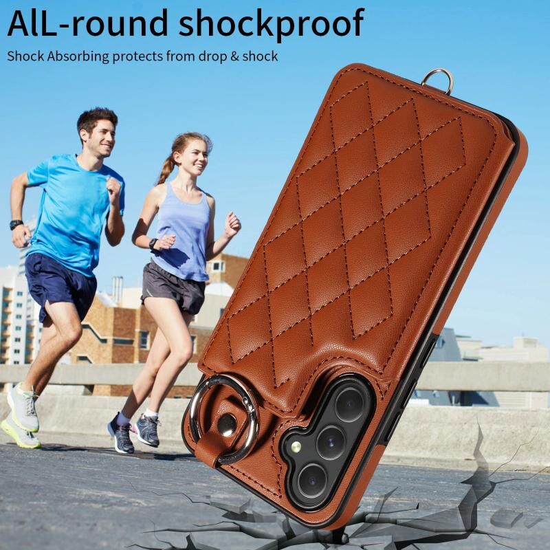 Για Samsung Galaxy A54 5G Rhombic υφή κάρτα τσάντα υπόθεση τηλεφώνου με σύντομο κορδόνι (καφέ)
