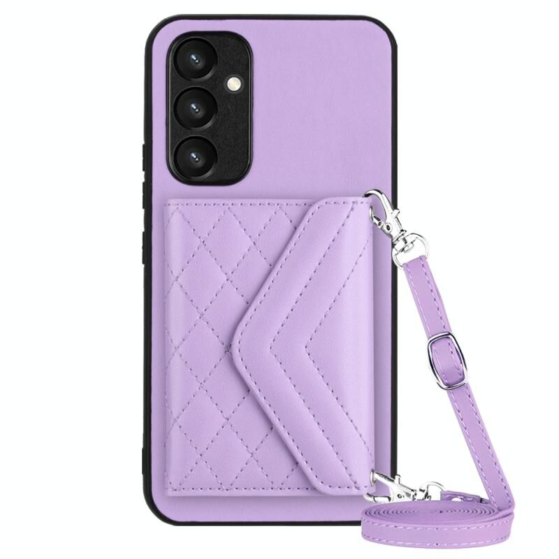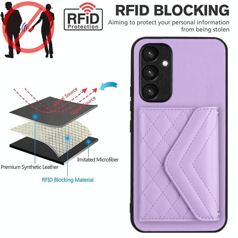 Για Samsung Galaxy A54 5G Rhombic υφή κάρτα τσάντα RFID υπόθεση τηλεφώνου με μακρύ κορδόνι (Light Purple)