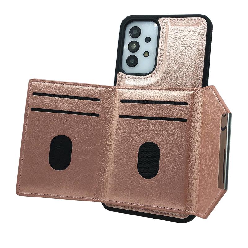 For Samsung Galaxy A54 5G Solid Color Metal Buckle Card Slots Bag Phone Case(Rose Gold)
