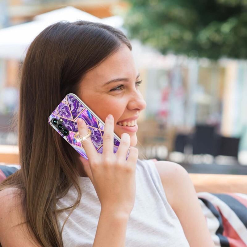 Θήκη κινητού τηλεφώνου Samsung Galaxy A54 5G, με σχέδιο μαρμάρου και λουλουδιών, IMD TPU, με δακτύλιο στήριξης (Σκούρο μωβ)