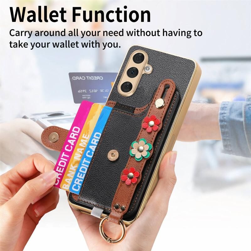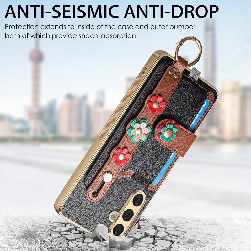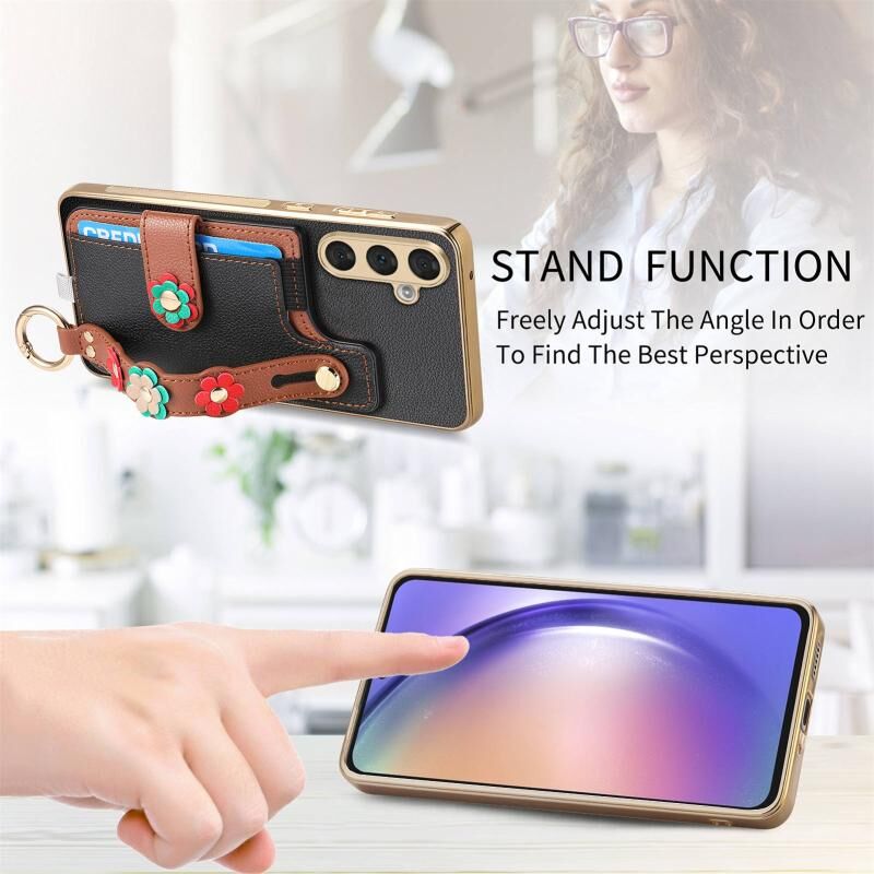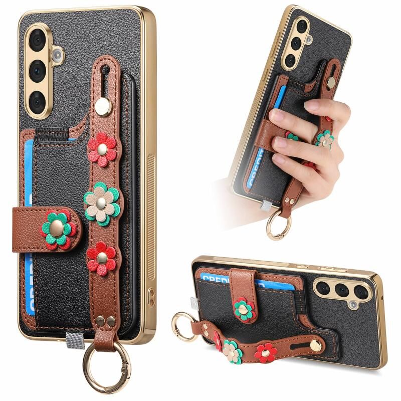 Για Samsung Galaxy A54 5G Στερεοσκοπική λουλούδια Wristband κάρτα τσάντα υπόθεση τηλεφώνου (Μαύρο)