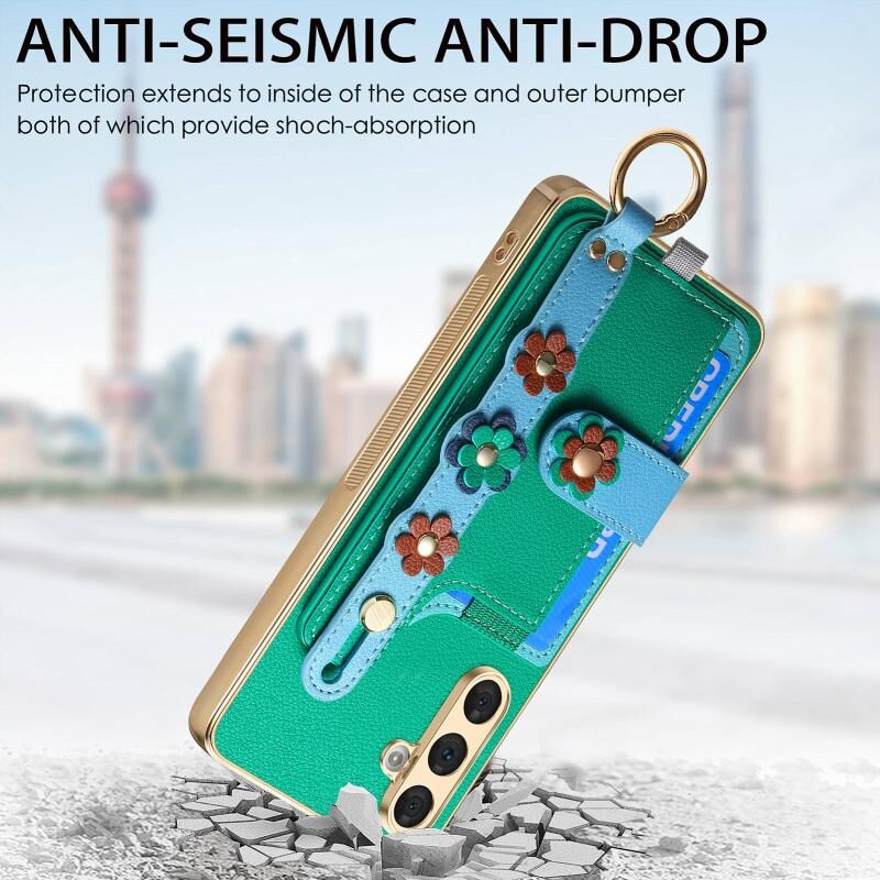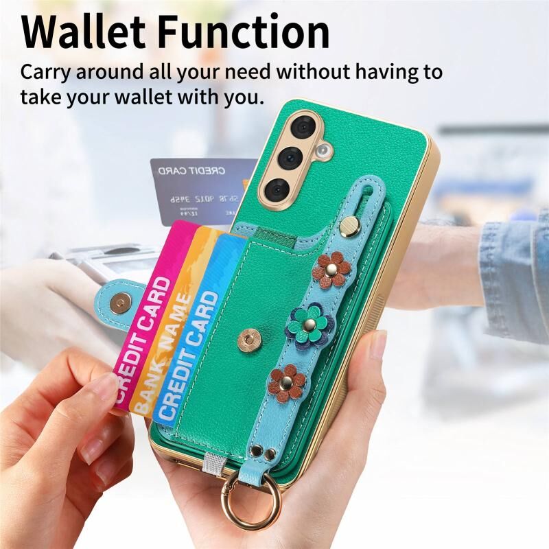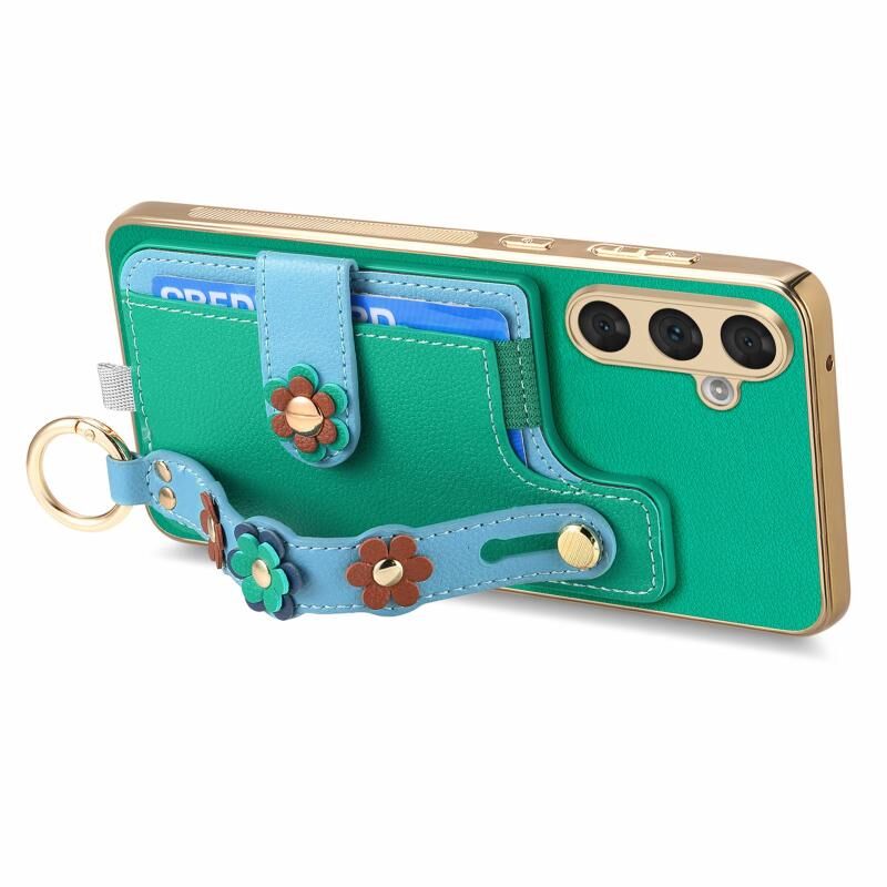 Για Samsung Galaxy A54 5G Στερεοσκοπική λουλούδια Wristband κάρτα τσάντα υπόθεση τηλεφώνου (πράσινο)