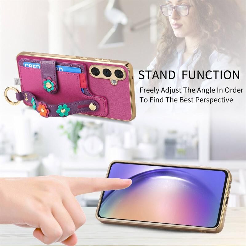 Για Samsung Galaxy A54 5G Στερεοσκοπική λουλούδια Wristband κάρτα τσάντα υπόθεση τηλεφώνου (Μωβ)