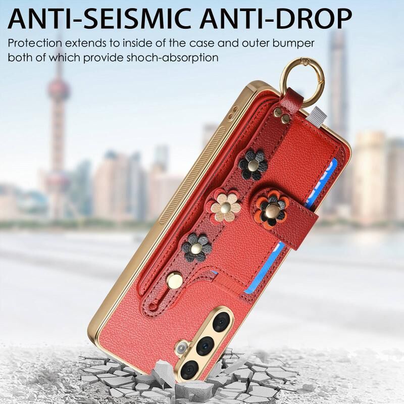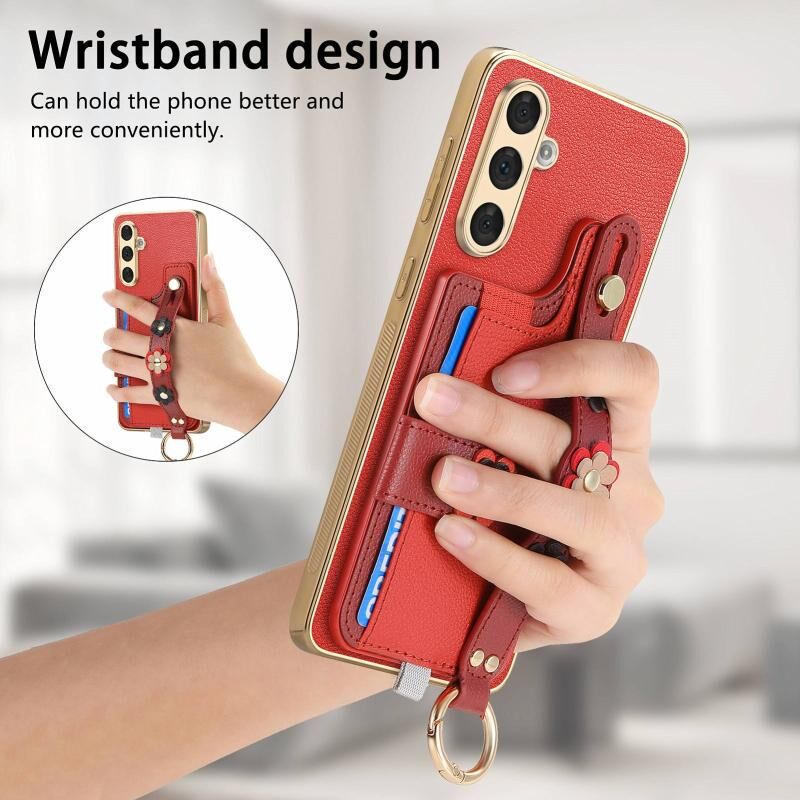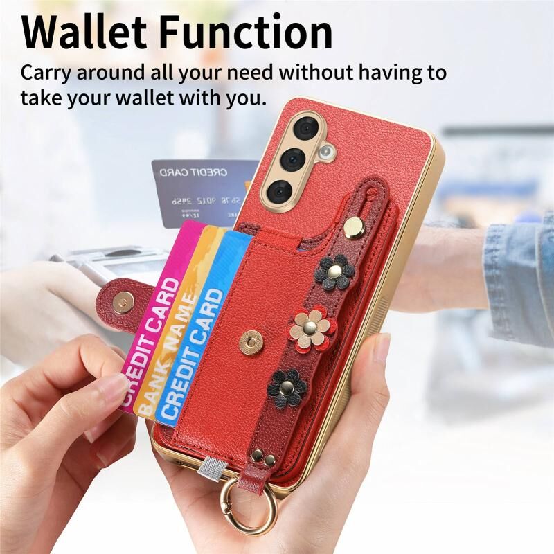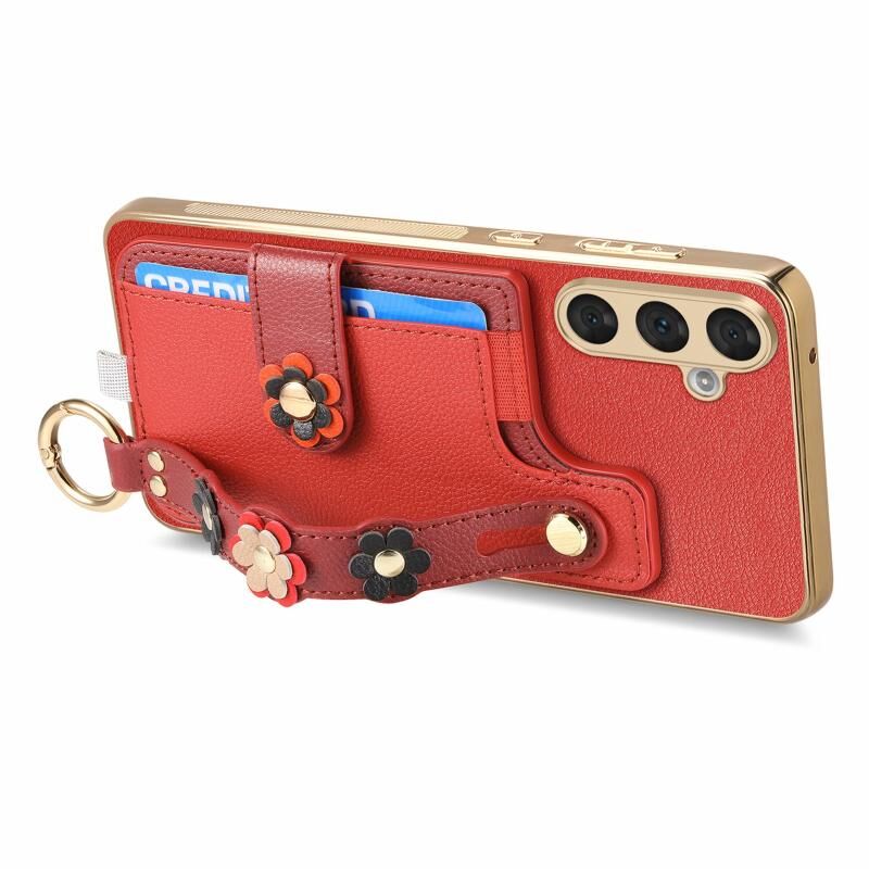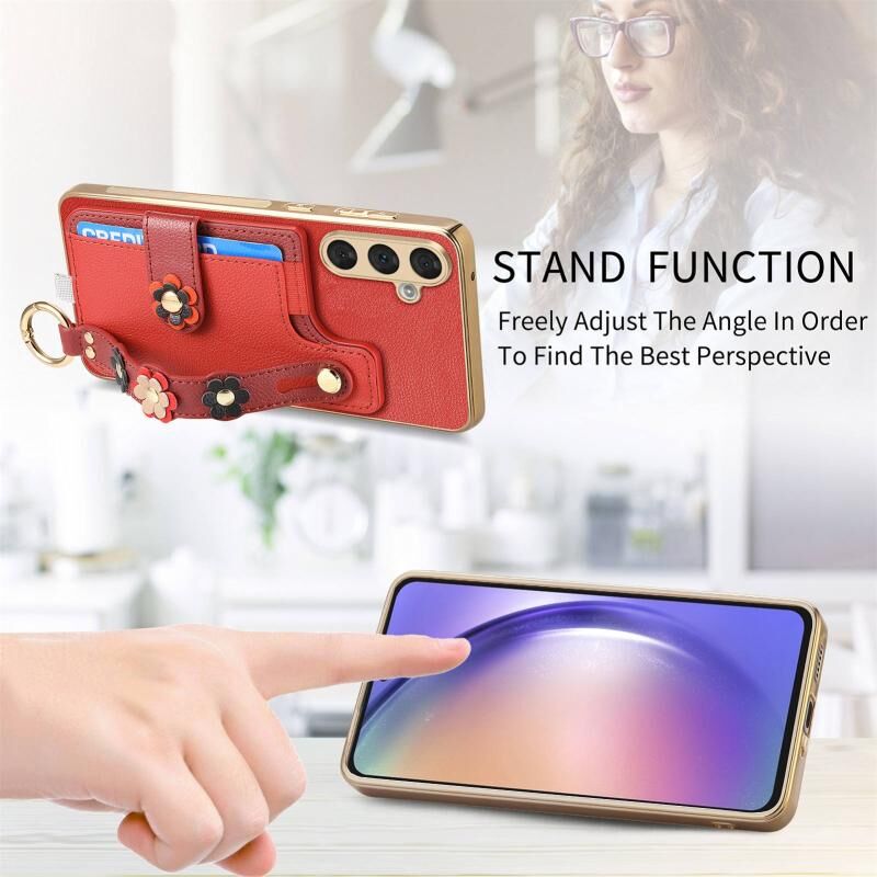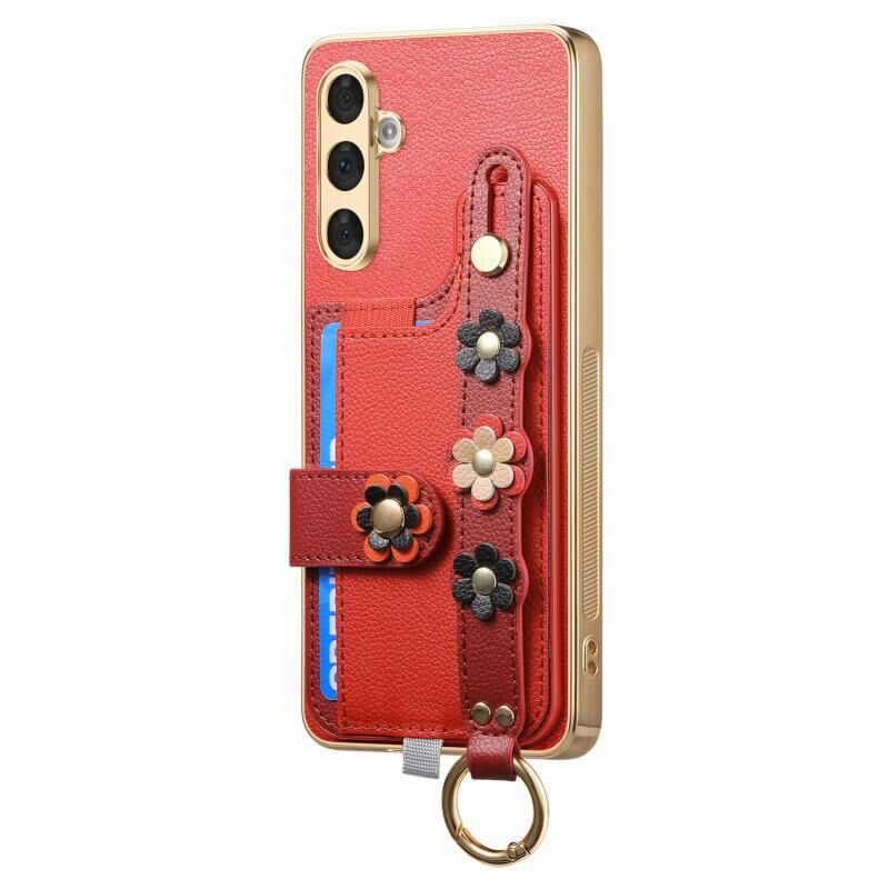 Για Samsung Galaxy A54 5G Στερεοσκοπική λουλούδια Wristband κάρτα τσάντα υπόθεση τηλεφώνου (Κόκκινο)