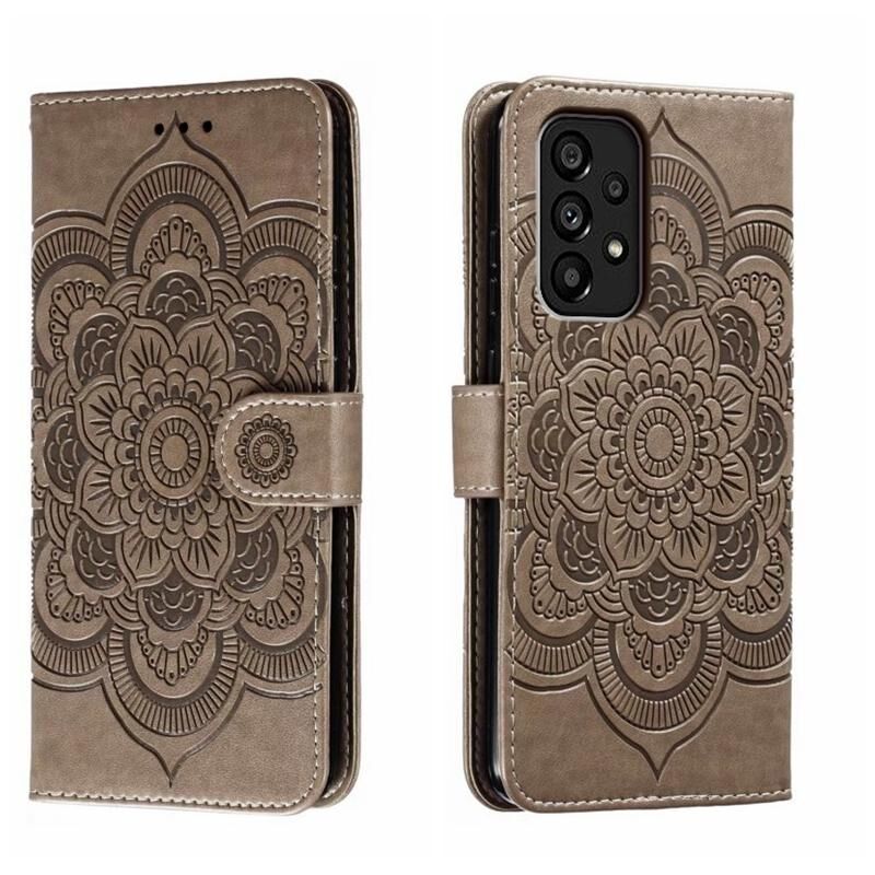 Για Samsung Galaxy A54 5G Sun Mandala ανάγλυφο μοτίβο τηλέφωνο δερμάτινη θήκη (γκρι)