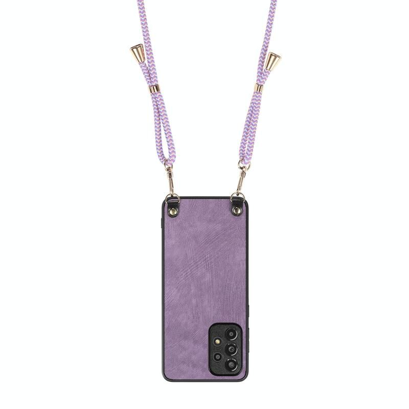 Για Samsung Galaxy A54 5G εκλεκτής ποιότητας δέρμα PC πίσω κάλυψη υπόθεση τηλεφώνου με λουράκι σταυρού (μωβ)