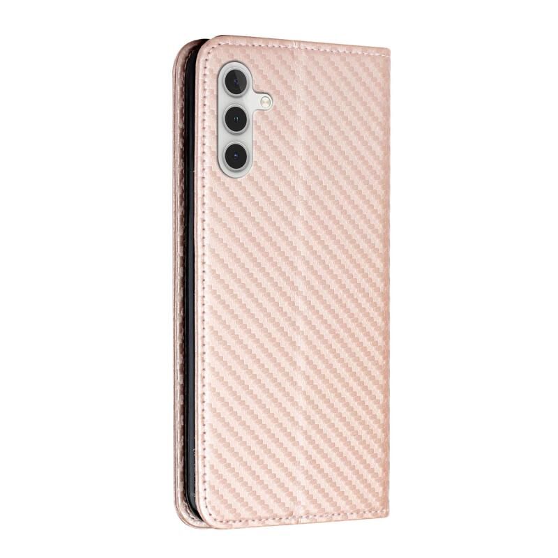 Θήκη τηλεφώνου Samsung Galaxy A54 από δέρμα με υφή ανθρακονημάτων και πτυσσόμενη βάση (Ροζ χρυσός)