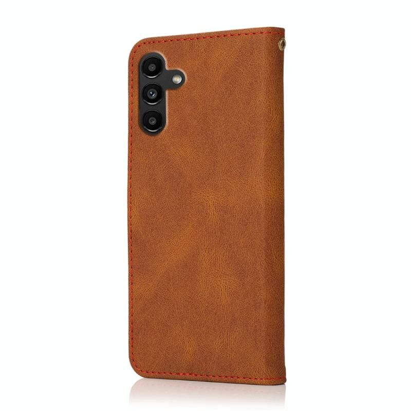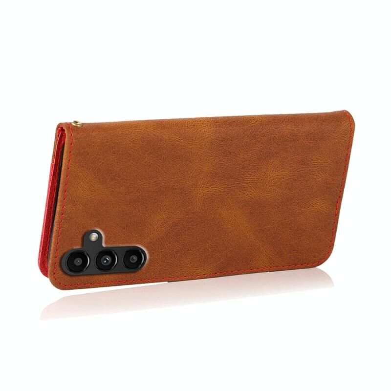 Θήκη τηλεφώνου Samsung Galaxy A54 Δερμάτινη με διχρωμία ραφής (Καφέ-κόκκινο)