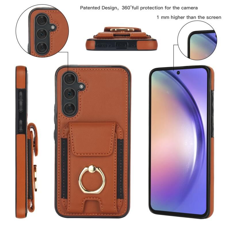 Για Samsung Galaxy A54 Ελαστική τσάντα κάρτα δαχτυλίδι τσάντα κάτοχος υπόθεση τηλεφώνου (Καφέ)