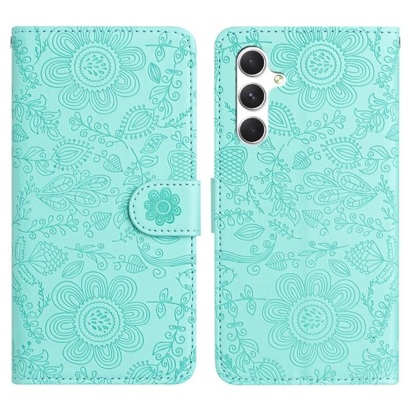 Για Samsung Galaxy A54 Floral ανάγλυφο μοτίβο δερμάτινη θήκη τηλεφώνου (ανοιχτό πράσινο)
