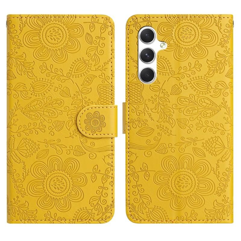 Για Samsung Galaxy A54 Floral ανάγλυφο μοτίβο δερμάτινη θήκη τηλεφώνου (κίτρινο)