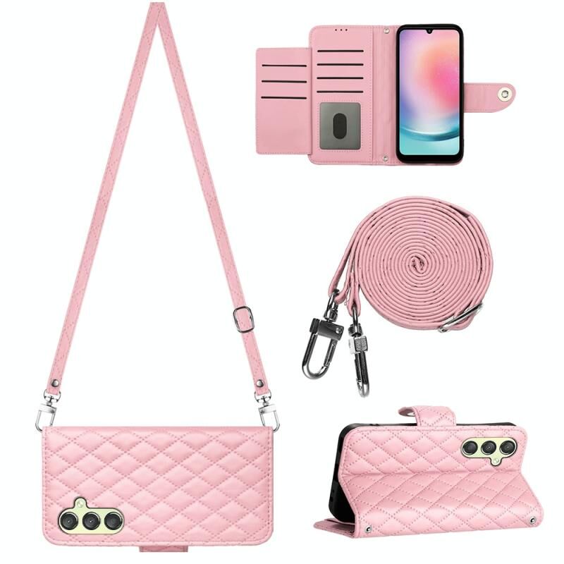 Για Samsung Galaxy A54 Rhombic υφή Flip δερμάτινη θήκη τηλεφώνου με μακρύ κορδόνι (ροζ)