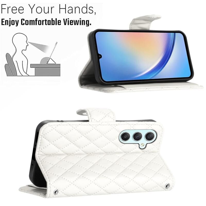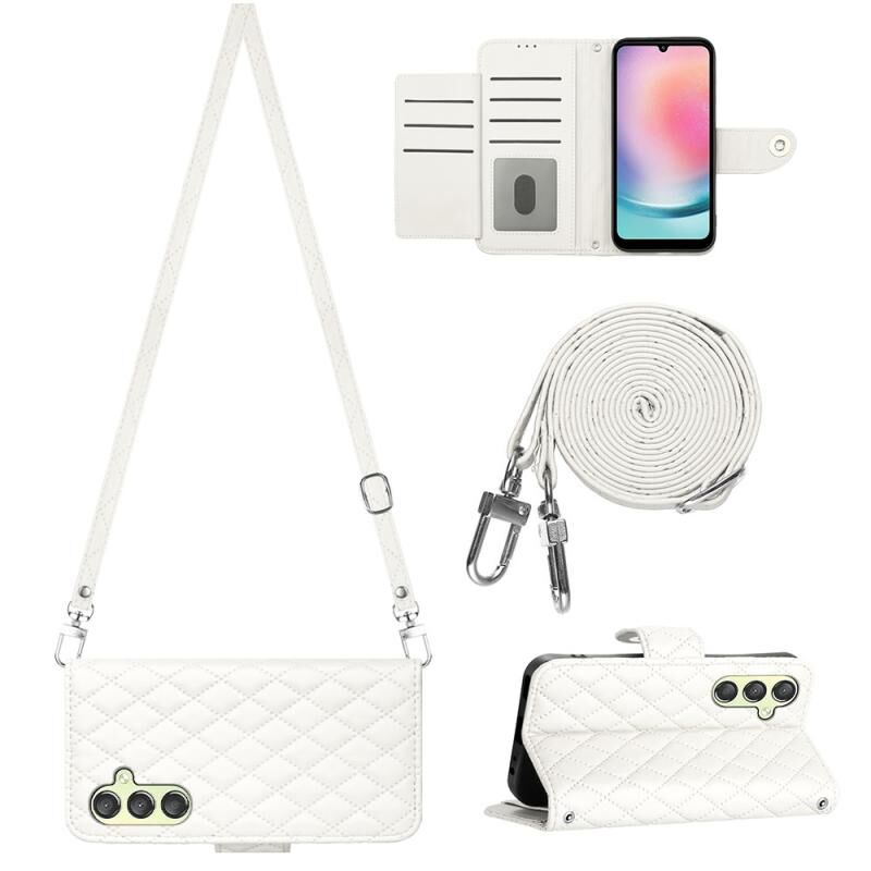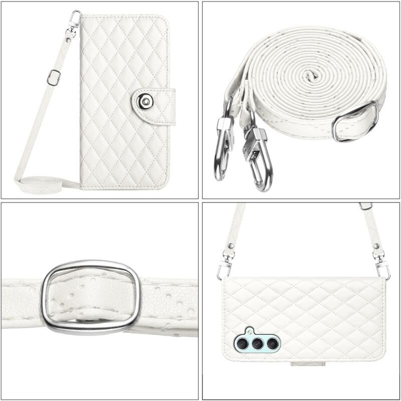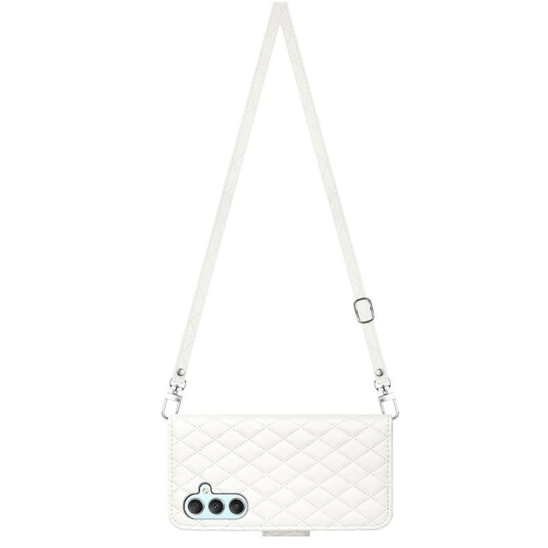Για Samsung Galaxy A54 Rhombic Texture Flip δερμάτινη θήκη τηλεφώνου με μακρύ κορδόνι (λευκό)