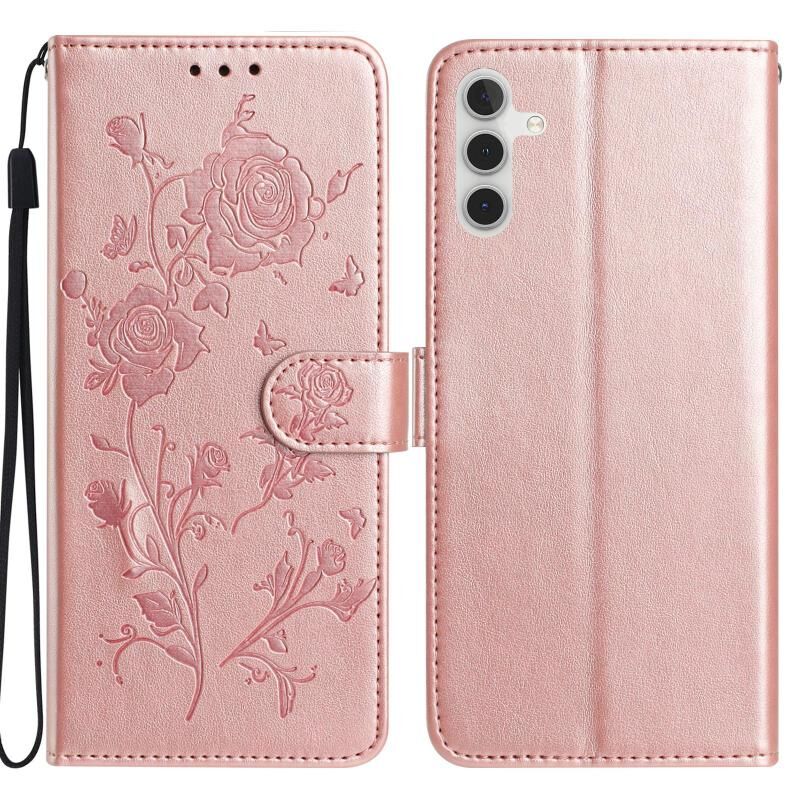 Θήκη τηλεφώνου δερμάτινη με ανάγλυφο σχέδιο ροζ άνθους για Samsung Galaxy A54 (Ροζ χρυσός)