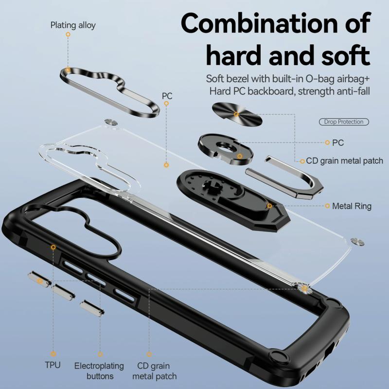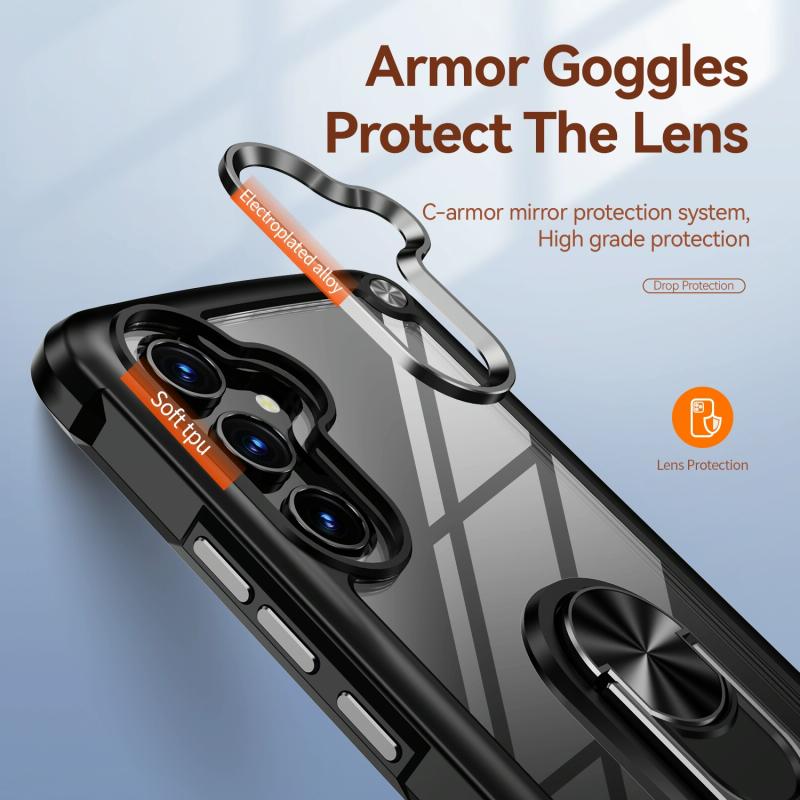 Θήκη τηλεφώνου για Samsung Galaxy A54 TPU + PC με προστασία φακού και δακτύλιο στήριξης (Μαύρο)