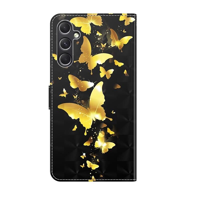 Θήκη τηλεφώνου Samsung Galaxy A55 5G, δερμάτινη, με σχέδιο 3D ζωγραφικής και αναδιπλούμενο τύπο (Χρυσή Πεταλούδα)
