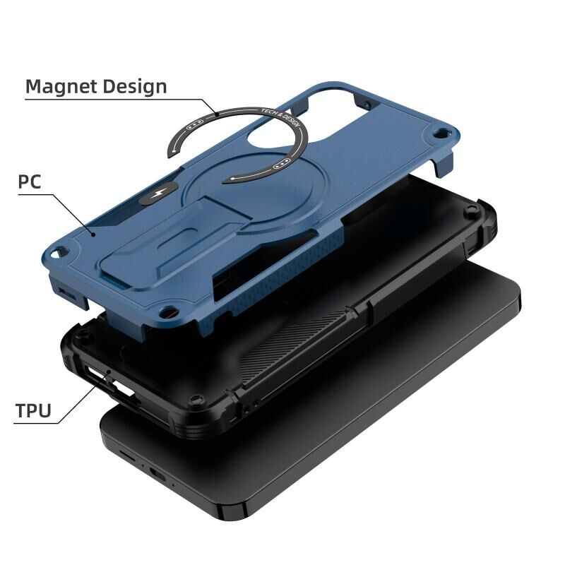 6. Βάση: Η ενσωματωμένη βάση στήριξης σας παρέχει την ιδανική γωνία θέασης τόσο σε οριζόντιο όσο και σε κάθετο προσανατολισμό. Όταν είναι διπλωμένη, ευθυγραμμίζεται άψογα με την πλάτη της θήκης, διατηρώντας ένα λεπτό προφίλ για εύκολη ολίσθηση στην τσέπη.