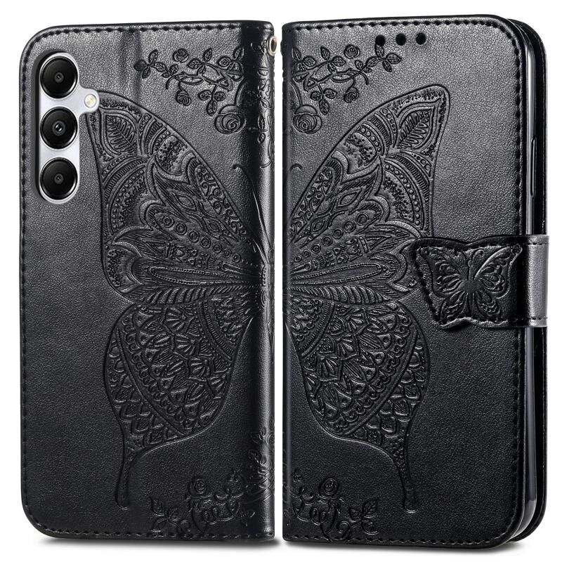 Για Samsung Galaxy A55 5G πεταλούδα αγάπη λουλούδι ανάγλυφο δερμάτινη θήκη τηλεφώνου (μαύρο)