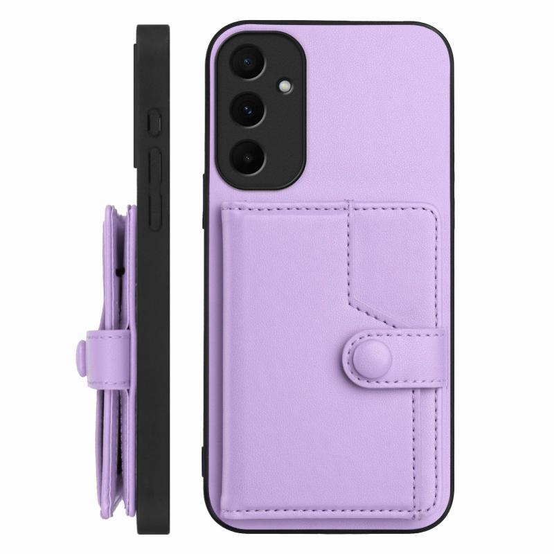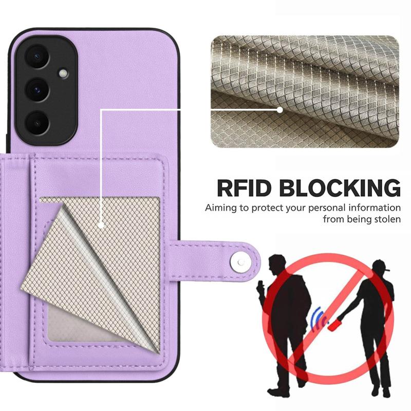 For Samsung Galaxy A55 5G Button Card Bag RFID Anti-theft Phone Case(Purple)