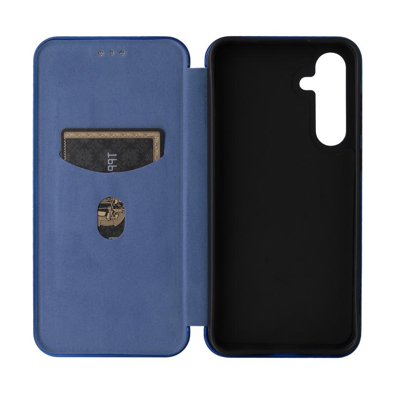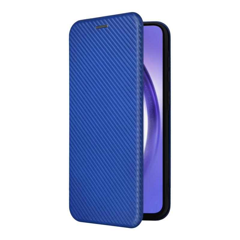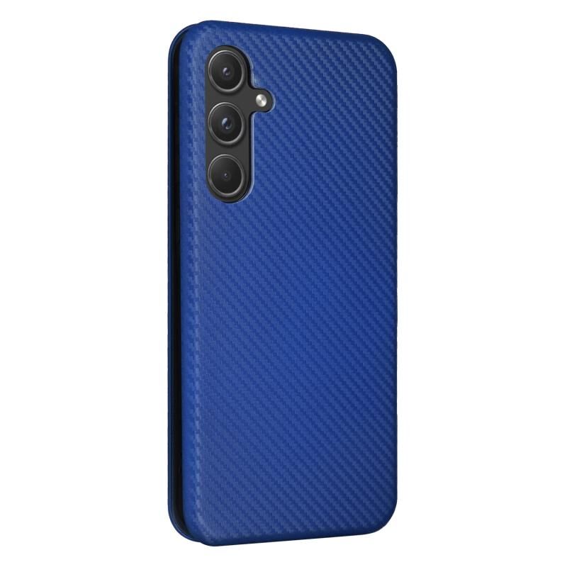 Θήκη τηλεφώνου Samsung Galaxy A55 5G από δέρμα με υφή ανθρακονημάτων (Μπλε)