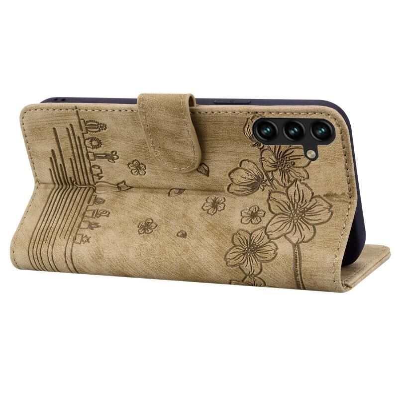Θήκη τηλεφώνου Samsung Galaxy A55 5G από δέρμα με ανάγλυφο σχέδιο καρτούν Sakura Cat (Καφέ)