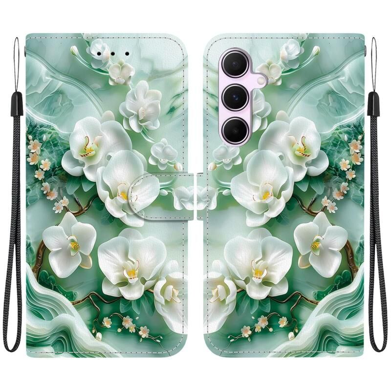Θήκη τηλεφώνου Samsung Galaxy A55 5G από δέρμα με πολύχρωμη σχεδίαση κρυστάλλινης υφής (Λουλούδια νεφρίτη)