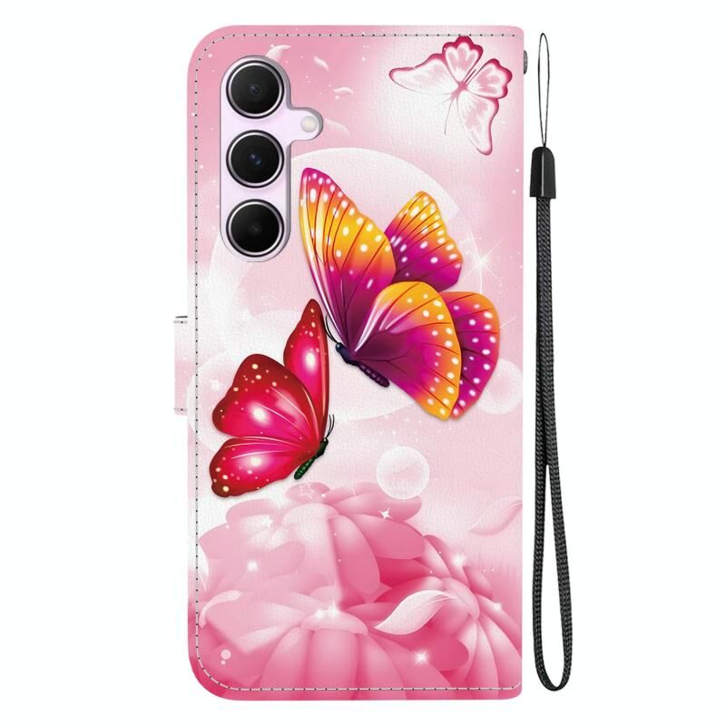 Θήκη τηλεφώνου Samsung Galaxy A55 5G από δέρμα με πολύχρωμη σχεδίαση κρυστάλλινης υφής (Χρυσά Φτερά Πεταλούδας)
