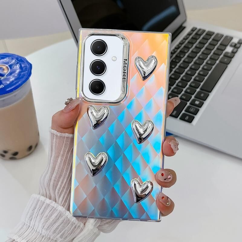 Θήκη τηλεφώνου TPU με ηλεκτρολυτική επίστρωση και υφή λέιζερ 5 καρδιών για Samsung Galaxy A55 5G (Καρό)