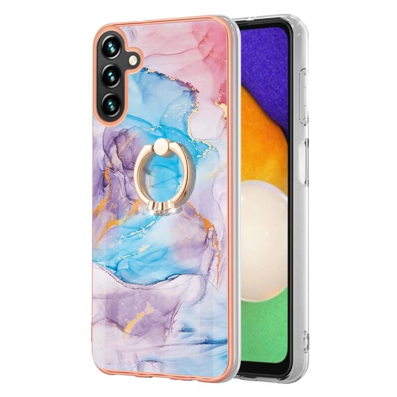 Θήκη κινητού τηλεφώνου Samsung Galaxy A55 5G με δακτύλιο, από TPU με ηλεκτρολυτική επιμετάλλωση IMD (Μπλε Μάρμαρο)