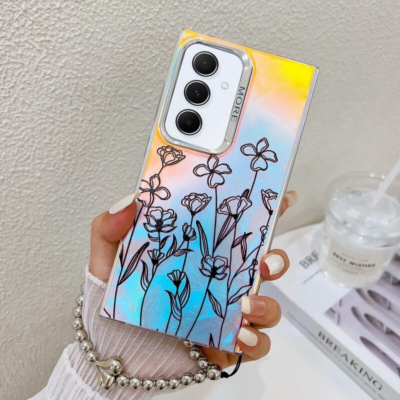 Θήκη τηλεφώνου για Samsung Galaxy A55 5G με ηλεκτρολυτική επίστρωση, λουλουδάτο σχέδιο laser και λουρί καρπού (Σχέδια λουλουδιών AH3)