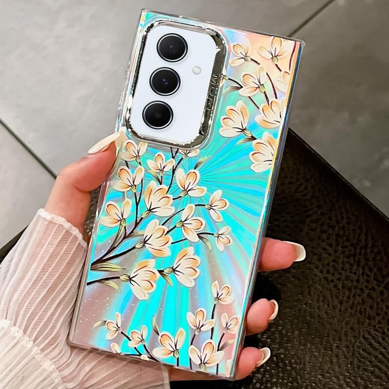 Θήκη τηλεφώνου TPU με ηλεκτρολυτική επίστρωση, λουλουδάτο σχέδιο λέιζερ για Samsung Galaxy A55 5G (Αχλαδιά AH17)