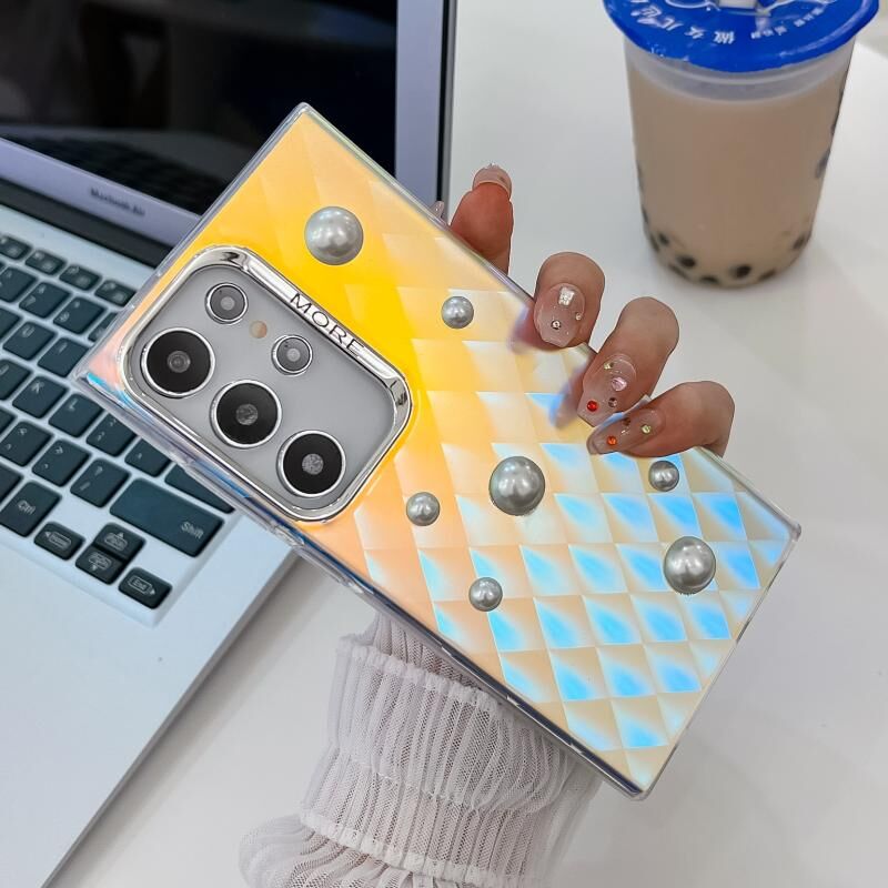 Θήκη τηλεφώνου TPU για Samsung Galaxy A55 5G με ηλεκτρολυτική επίστρωση, υφή λέιζερ μαργαριταριού (καρό)