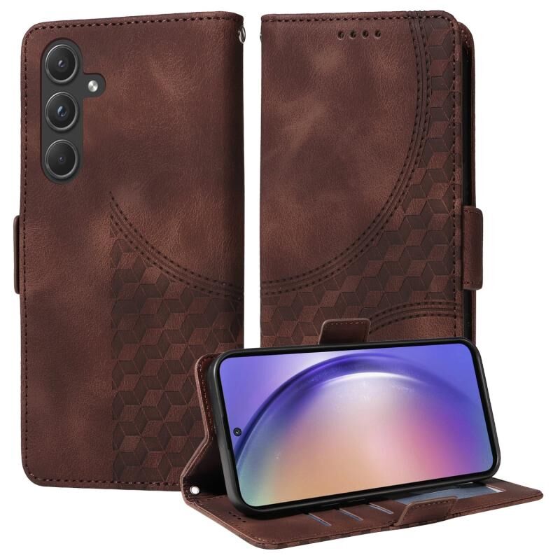 Για Samsung Galaxy A55 5G ανάγλυφο ρόμβος αστερόεσσα δερμάτινη θήκη τηλεφώνου (καφέ)