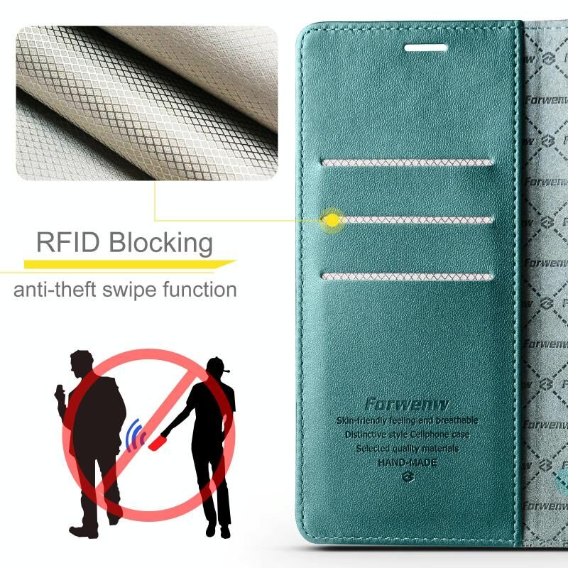 For Samsung Galaxy A55 5G Forwenw F6 Series RFID Leather Phone Case(Green) (Forwenw)
