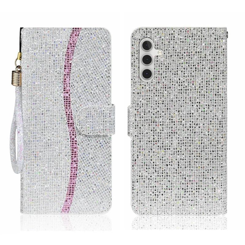Για Samsung Galaxy A55 5G Glitter σκόνη Filp δερμάτινη θήκη τηλεφώνου (Ασημί)