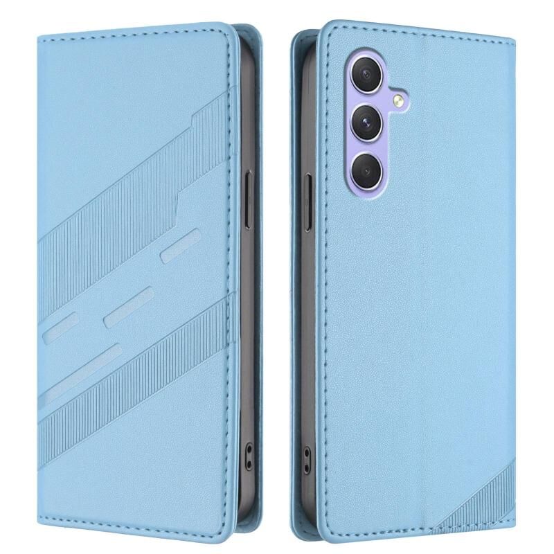 Θήκη τηλεφώνου Samsung Galaxy A55 5G Global με ανάγλυφο σχέδιο, πολυλειτουργικό πορτοφόλι από δέρμα σε ρετρό στυλ (Ανοιχτό μπλε)