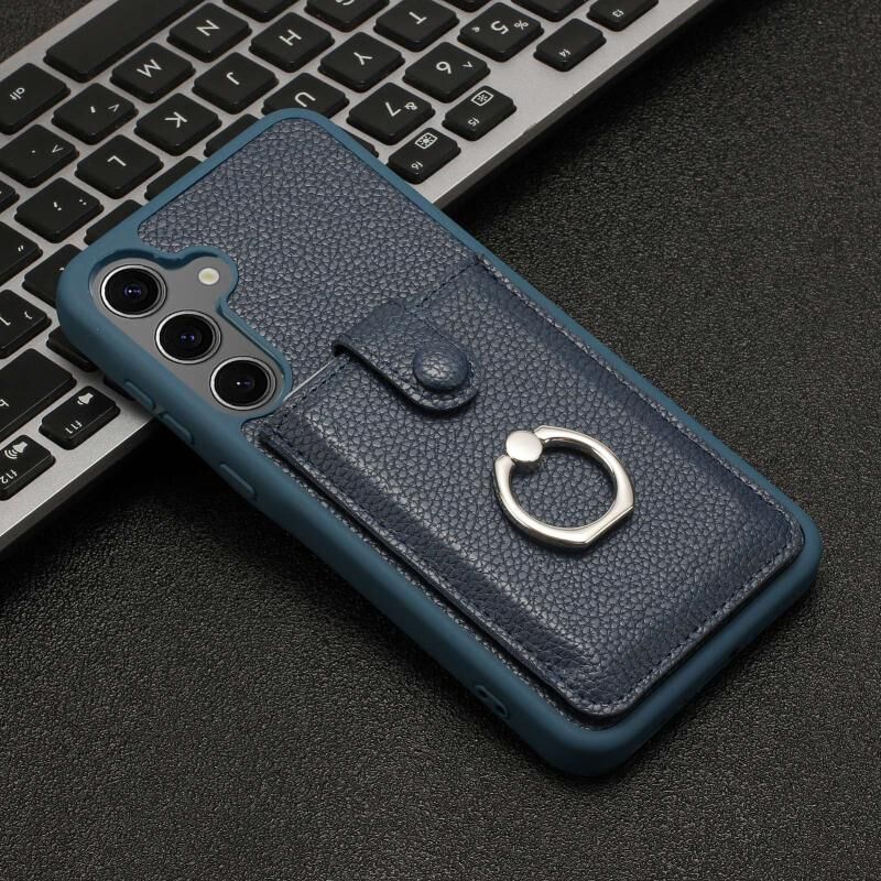 Για Samsung Galaxy A55 5G Παγκόσμια Litchi Υφή Σχεδίαση κάρτα τσάντα δαχτυλίδι τσάντα κάτοχος υπόθεση τηλεφώνου (Μπλε)