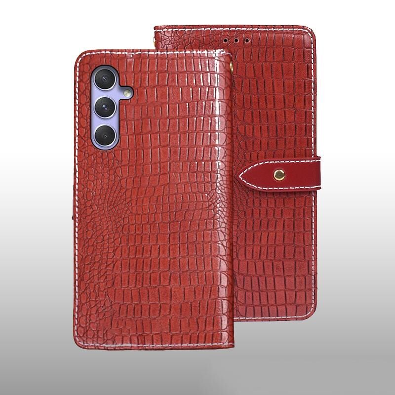 Θήκη τηλεφώνου δερμάτινη με υφή κροκόδειλου idewei για Samsung Galaxy A55 5G (Κόκκινη) (idewei)