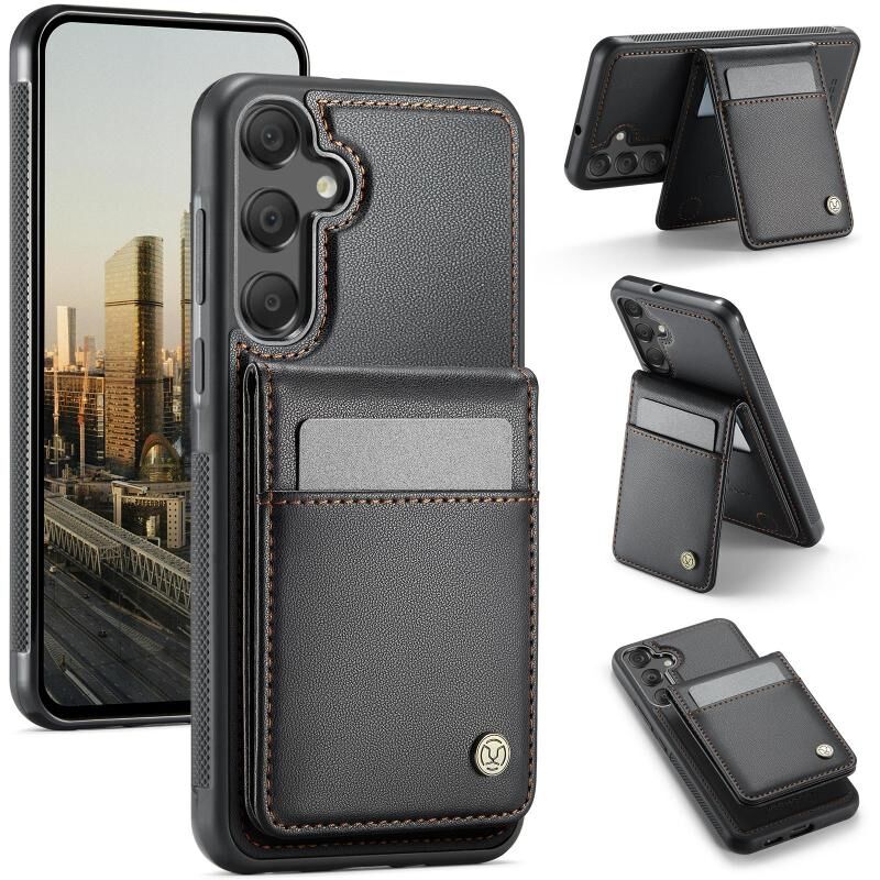 For Samsung Galaxy A55 5G JEEHOOD J06 British Style RFID MagSafe Card Bag PU Phone Case(Black) (JEEHOOD)