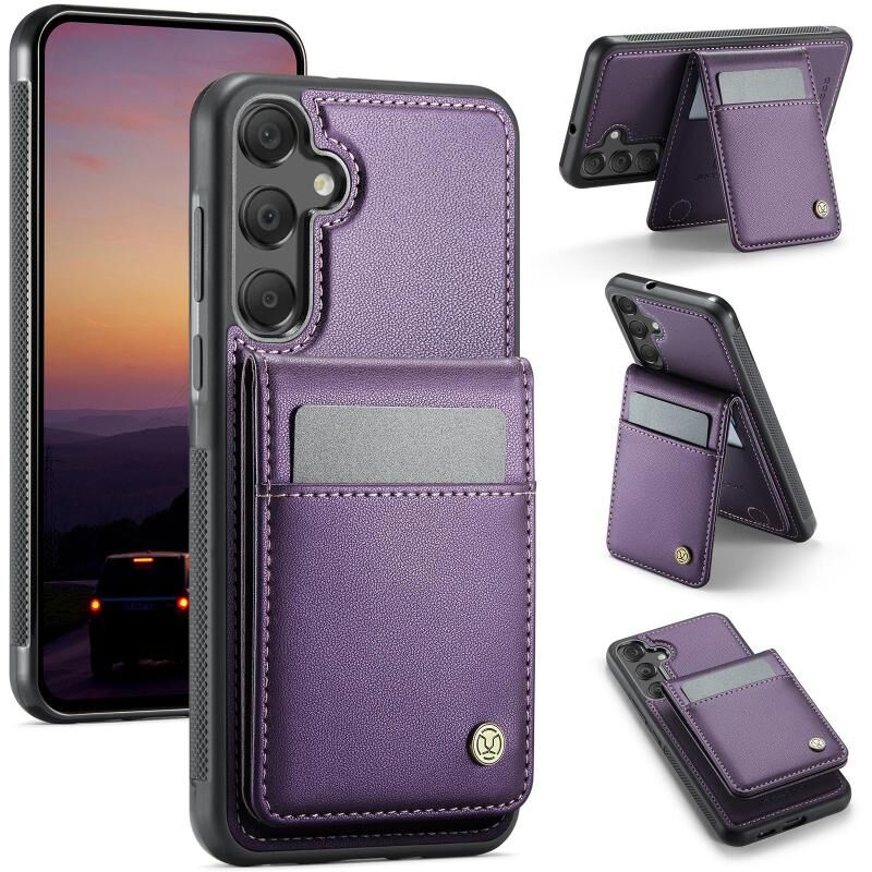 For Samsung Galaxy A55 5G JEEHOOD J06 British Style RFID MagSafe Card Bag PU Phone Case(Purple) (JEEHOOD)