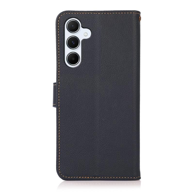 Θήκη τηλεφώνου Samsung Galaxy A55 5G KHAZNEH Custer από γνήσιο δέρμα με προστασία RFID (Μπλε)