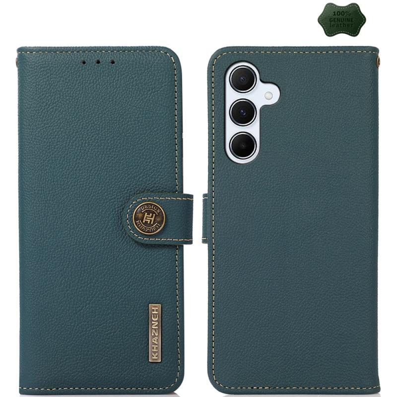 For Samsung Galaxy A55 5G KHAZNEH Custer Genuine Leather RFID Phone Case(Green)