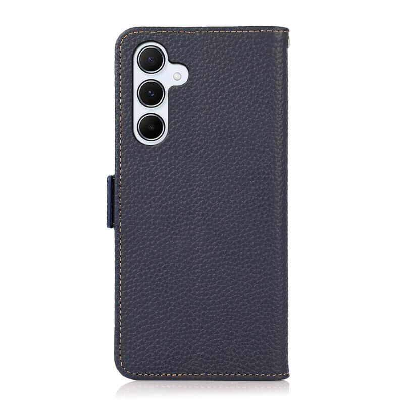 Θήκη κινητού τηλεφώνου Samsung Galaxy A55 5G KHAZNEH με μαγνητικό κλείσιμο, από γνήσιο δέρμα Litchi και προστασία RFID (Μπλε)