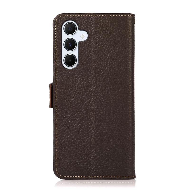 For Samsung Galaxy A55 5G KHAZNEH Side-Magnetic Litchi Genuine Leather RFID Phone Case(Brown)